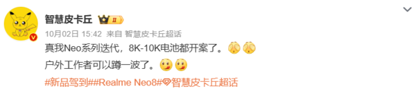 结合此前多方爆料,真我Neo8系列升级的重点预计将是续航能力。为了匹配大电池,新机预计将支持100W有线闪充技术,以实现快速补能。同时,有爆料称,真我Neo8系列可能搭载新一代硅基电池技术,该技术能在相同体积下提供更高的能量密度,有助于在保持机身相对轻薄的同时实现大电池容量。此外,新机还可能配备“全局旁路充电”功能,让电力直接为系统供电,减少电池发热和损耗。